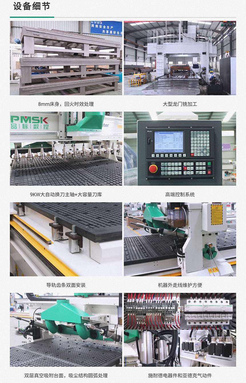 ◆臺灣人性化控制系統(tǒng),可一鍵銑底板、一鍵加工預埋件孔位,自動排隊加工,配合六面鉆使用更高效。