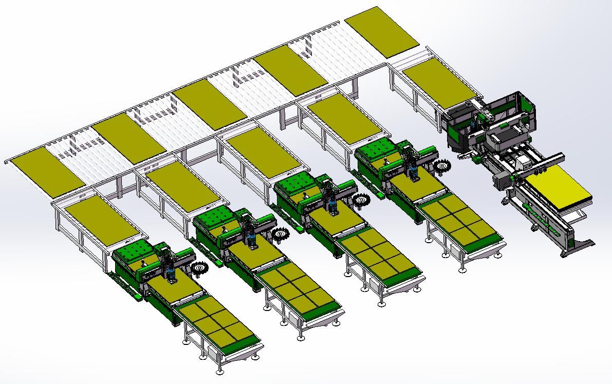 品脈櫥衣柜模壓門板數(shù)控生產(chǎn)線分為六部分組成,分別是智能貼標(biāo)區(qū)、數(shù)控鉆孔開槽區(qū)、自動(dòng)下料區(qū)、自動(dòng)翻板區(qū)、智能分料區(qū)、數(shù)控雕刻區(qū),通過總控系統(tǒng)無縫對接實(shí)現(xiàn)智能化生產(chǎn)。這樣就是實(shí)現(xiàn)了生產(chǎn)過程中資源配置效率高、生產(chǎn)效率高、勞動(dòng)成本及管理成本低等特點(diǎn),這也是國內(nèi)一線門板廠現(xiàn)在計(jì)劃考慮的模式,更是門業(yè)生產(chǎn)行業(yè)后續(xù)的發(fā)展趨勢。