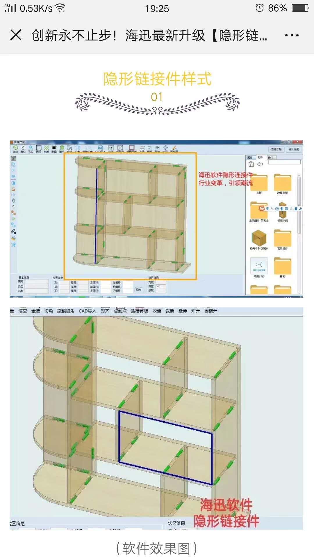 現(xiàn)在還有一種拉米諾的隱形連接件,這種加工的需要的數(shù)控開(kāi)料機(jī)要求要高一些,側(cè)孔機(jī)工藝也要復(fù)雜一些,這套設(shè)備的話投入要比普通連接件要高不少,所以現(xiàn)在實(shí)際生產(chǎn)這種連接件的還不是很廣泛。