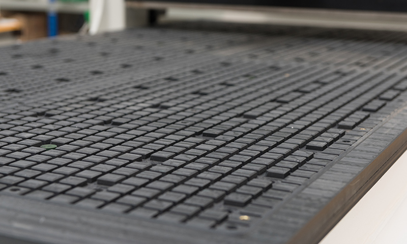 數(shù)控開料機(jī)臺面結(jié)構(gòu)。并且加工小板比較小,或者工件透氣性很好,可以選擇給機(jī)器加配壓輪,以達(dá)到更好的加工效果。