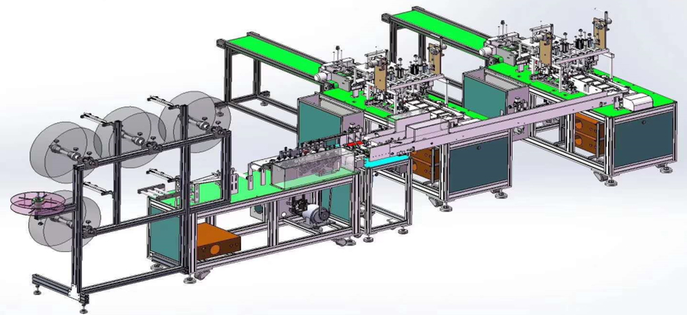 品脈數(shù)控研發(fā)設(shè)計(jì)的全自動(dòng)高效口罩生產(chǎn)線,由原材料自動(dòng)輸送系統(tǒng)、折疊成型系統(tǒng)、耳帶熔焊系統(tǒng)、下料系統(tǒng)組成;適用于多層PP無(wú)紡布、活性炭以及過(guò)濾材料,通過(guò)超聲波熔接和自動(dòng)封邊,完成平面口罩從原材料卷料到口罩成型的整個(gè)生產(chǎn)過(guò)程,實(shí)現(xiàn)口罩生產(chǎn)從材料到成品的全自動(dòng)化,每小時(shí)可產(chǎn)口罩達(dá)6000~8000只。