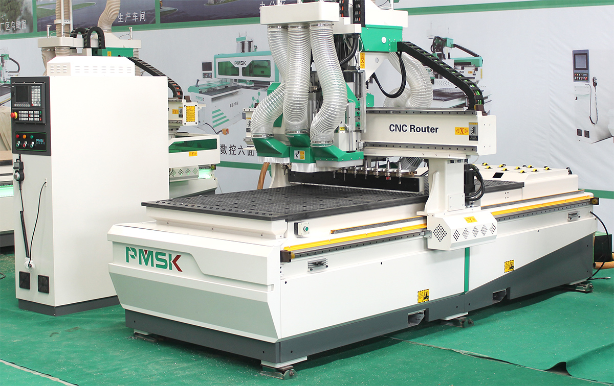 1機器接通電源,加工臺面上上放好藍色刨花板。