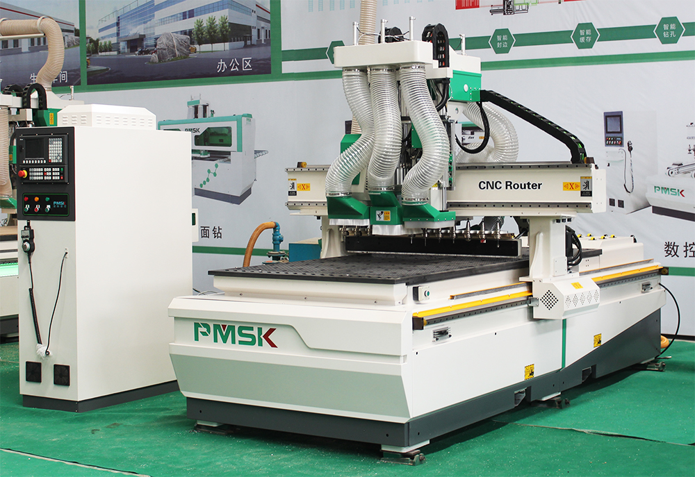 數(shù)控拉米諾開料機(jī)板式家具開料設(shè)備中的一種,主要是數(shù)控化解決板式家具制作中對板材進(jìn)行鉆孔、銑槽、切割、雕刻、銑形等工序。拉米諾開料機(jī)機(jī)器機(jī)頭結(jié)構(gòu)部分必須加裝四軸旋轉(zhuǎn)鋸,用鋸片進(jìn)行銑拉米諾隱形件所需月牙槽。就目前市面上比較先進(jìn)的數(shù)控拉米諾開料機(jī)來說,機(jī)器頭部結(jié)構(gòu)搭配了9KW自動換刀主軸、排鉆組、四軸旋轉(zhuǎn)鋸三大機(jī)械部件。機(jī)器自動換刀主軸配合12把容量刀庫,可以解決各種復(fù)雜生產(chǎn)工序,包括銑形,雕刻,鏤空等,排鉆組能夠提高機(jī)器做定制家具打孔效率,四軸旋轉(zhuǎn)鋸用鋸片銑拉米諾月牙槽,效率高,精度高。并且數(shù)控拉米諾開料機(jī)還能夠加工U型扣、木得易等隱形連接件所需的安裝槽。