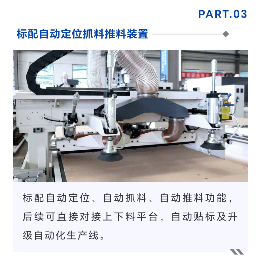 品脈數(shù)控EA48G直排換刀加工中心主要用于板式家具柜體以及櫥柜門板的生產(chǎn)加工,設(shè)備搭配9KW自動(dòng)換刀主軸和12容量排式刀庫(kù),一次裝夾可快速實(shí)現(xiàn)鉆孔、開槽、銑形、雕刻、切割下料等工序。